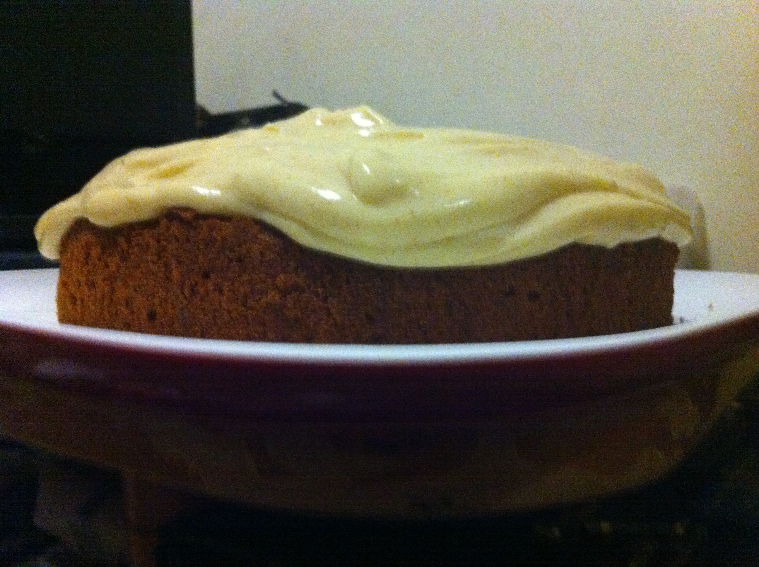 I had planned to bake some applesauce flavoured biscuits and was inspired to try a cake recipe, since the jar of unsweetened applesauce I bought was so large. I could tell from the recipe planning process that my cake would not taste sufficiently similar to the mini muffins of my youth and I was correct. That don’t even matter though, because this cake tasted so sweet and tangy. The tanginess came from the cinnamon infused cream cheese frosting. Mmm!